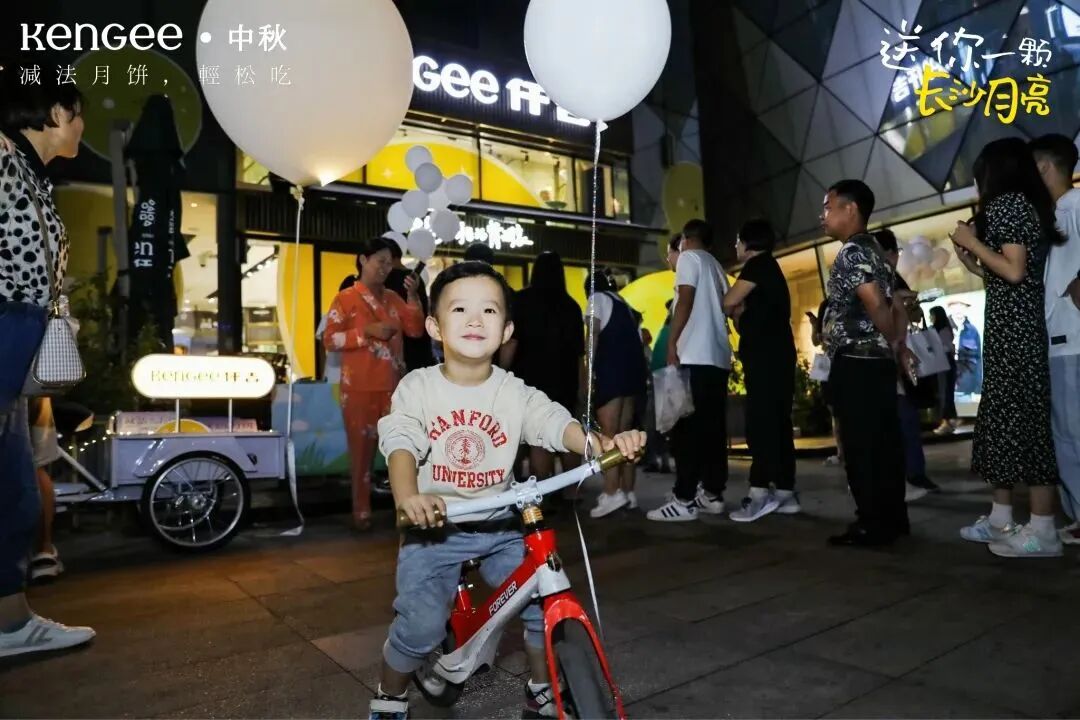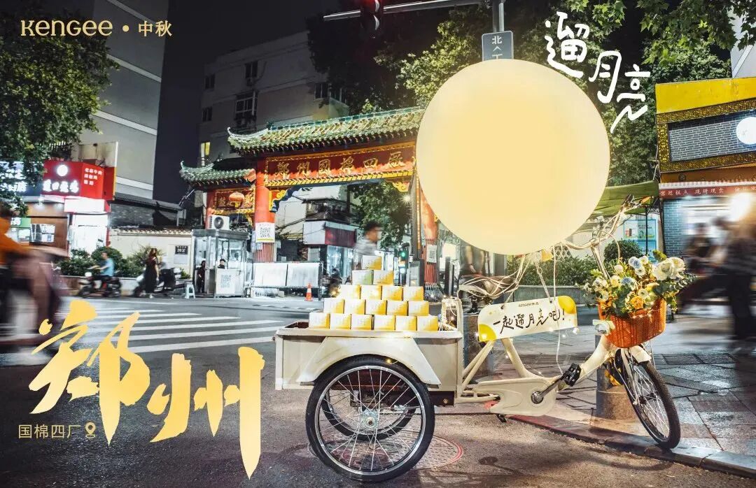 去年中秋仟吉发起「遛月亮」活动,一辆三轮车,一个绑在车后的月亮,童话般的场景,简单又治愈。这种轻巧的天真,让人回到小时候,和月亮捉迷藏的简单快乐。