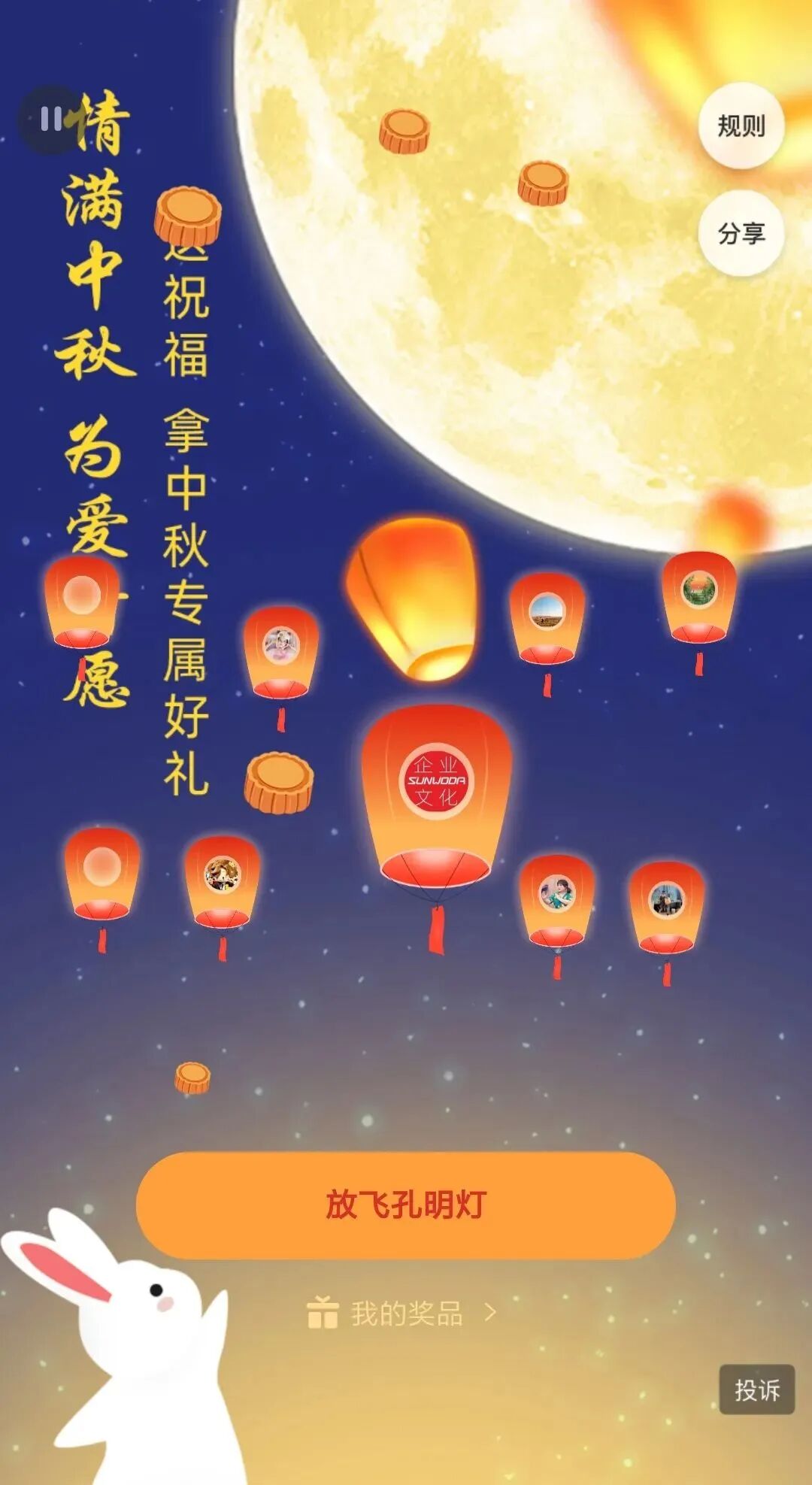 欣旺达去年中秋组织员工将祝福写到孔明灯中,亲手放飞它。需要在开始前填写好身份信息,点击孔明灯在对话框写下自己的心愿,每人有两次许愿机会,一次抽奖机会。