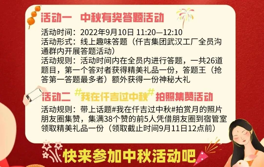 比如仟吉去年中秋时,组织了线上中秋有奖答题活动,和拍照集赞活动,劳逸结合的同时,也增添了节日的氛围。