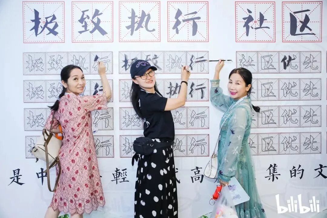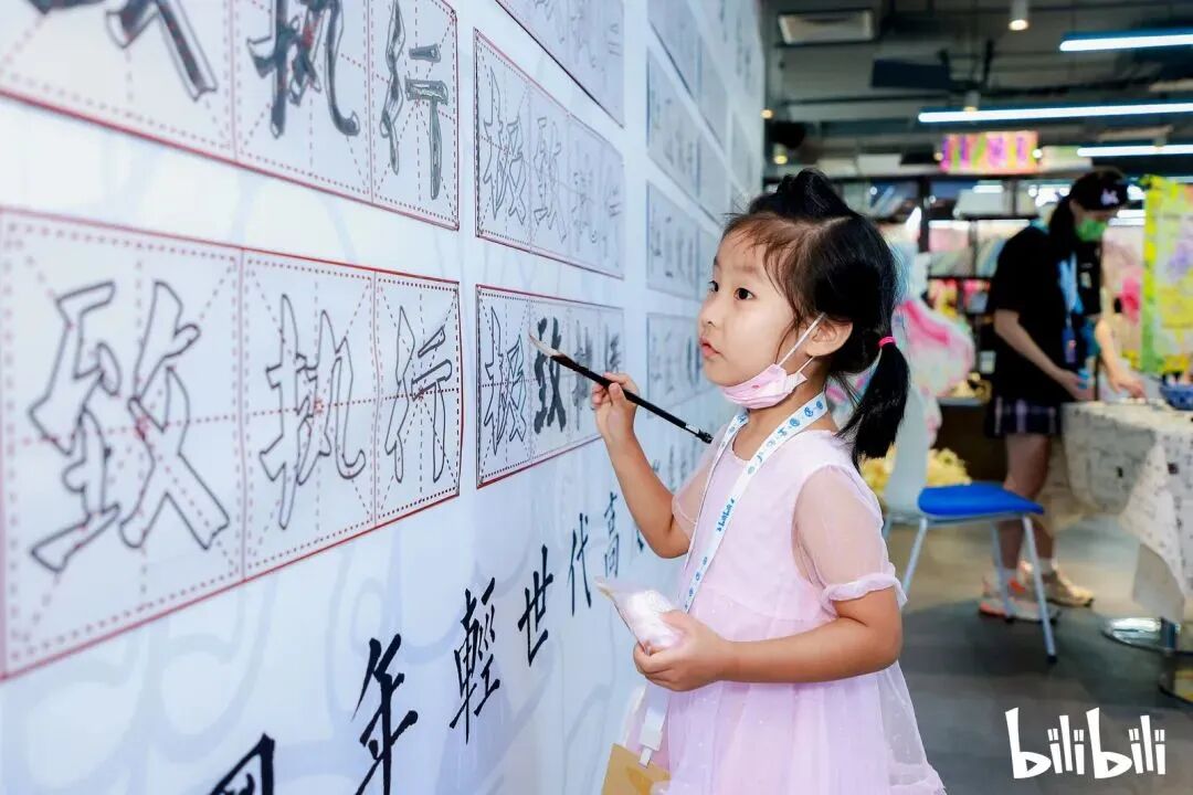 B站在去年中秋家庭日上打造了一面足有一人高的书法墙,组织大小朋友们一起写下哔哩哔哩四大价值观,也非常有创意。