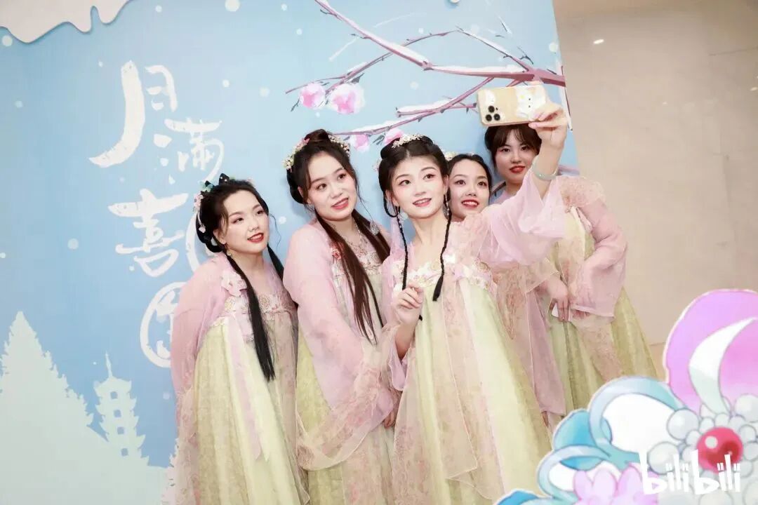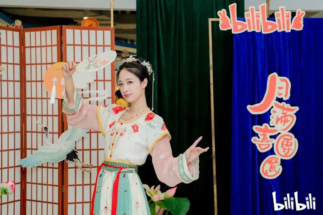 B站2022年中秋家庭日为员工准备了一场月下汉服展,B站员工们身着华服,自信展示着传统文化气韵。