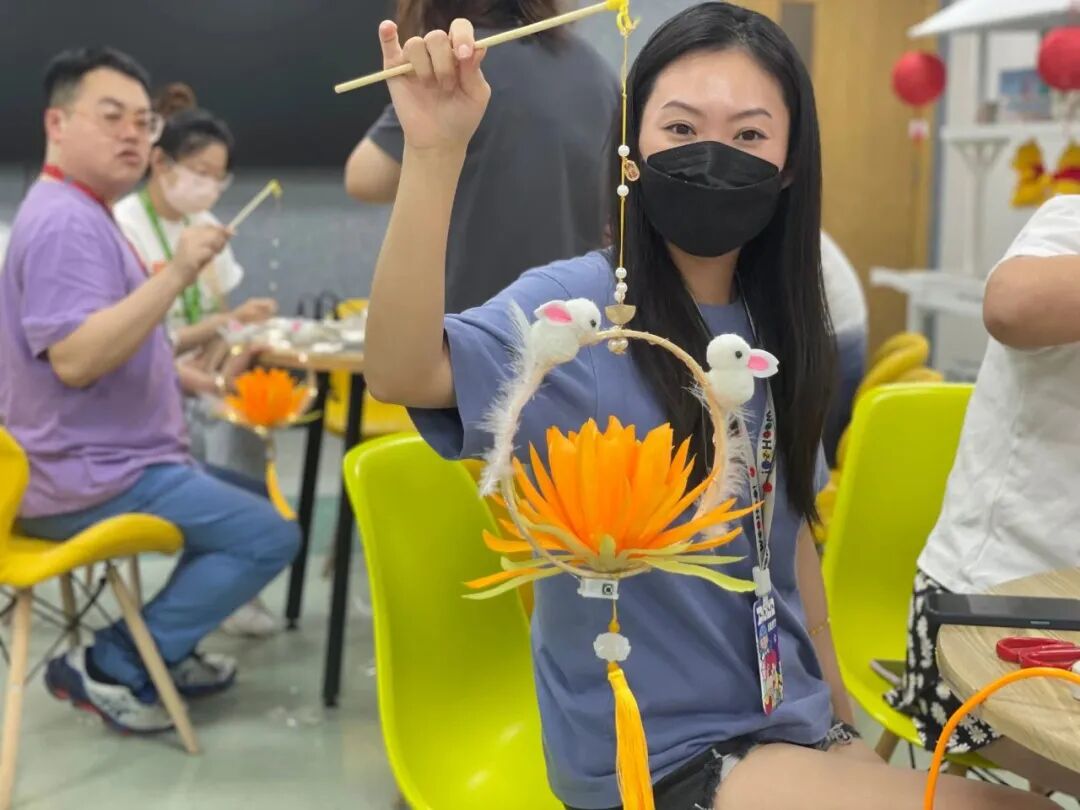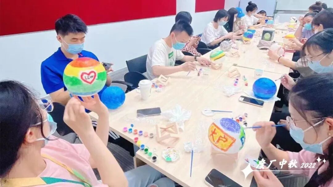 完美去年中秋节特意邀请非遗文化讲师,带领员工一同体验DIY花灯、DIY团扇,亲手制作有完美er独特风格的中秋周边。