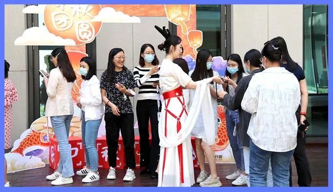 “华夏衣冠千古韵”,中秋活动当天,完美鼓励大家一起弘扬传统文化,穿着汉服上班。身着汉服,好似携手穿越时空。亲身感受文明古国传统服饰的魅力! 玩在一起,才是趣赏中秋。