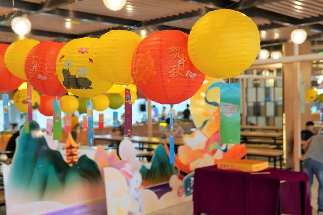还可以在办公区打造中秋打卡点,营造中秋氛围的同时还能为员工打造专属回忆。