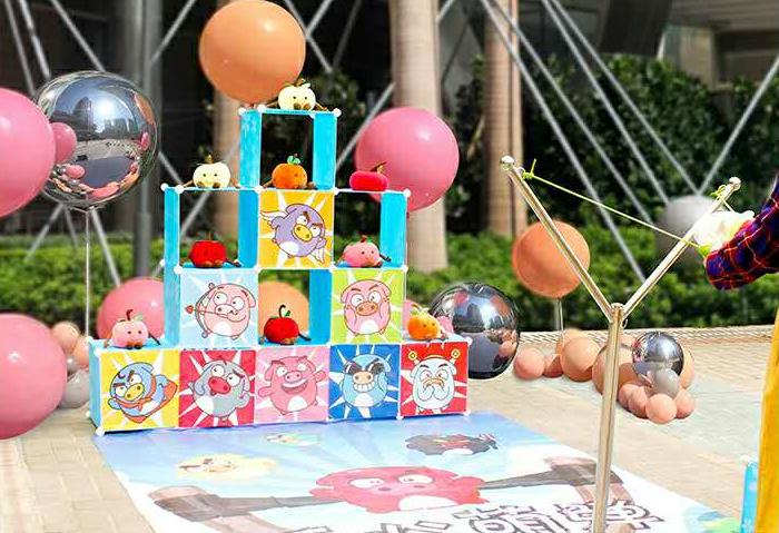 华为北京曾在中秋时准备了「愤怒的小鸟」游戏,使用道具抛出小公仔,击中展架上的小公仔还可以领取对应小公仔一个。