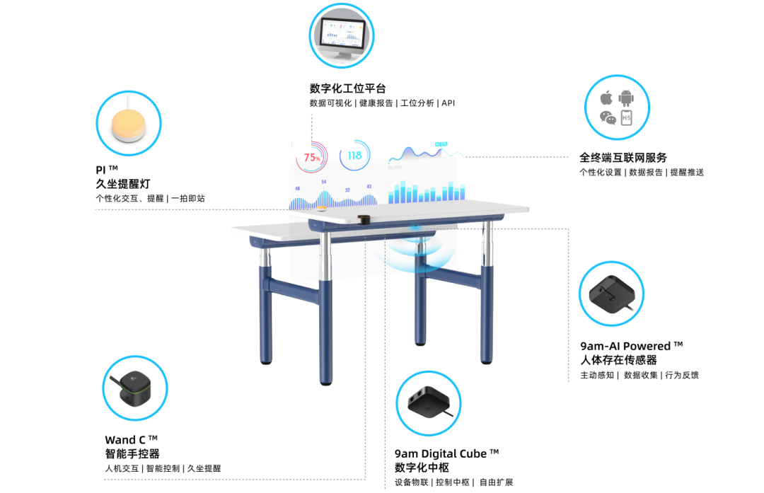 “利用智能设备,不管是人体工学设备还是传感器,把整套物联网解决方案,与云端办公空间分析、办公健康管理、工位管理、空间管理的方式,全部通过AIoT搭建起来,收集空间的各种数据,可以帮助大家提升整体空间的使用效率。”