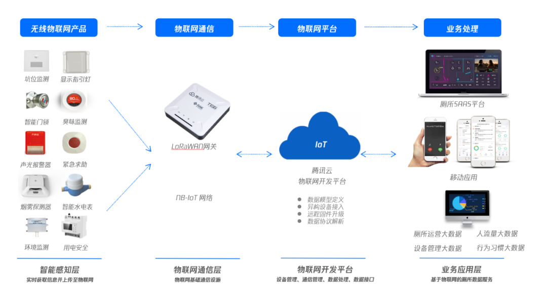 智能厕卫也是企业内部物联网技术应用的重要场景,它通过设置传感、监测、控制、汇集、处理等设备收集和处理数据,并利用互联网技术实现快速数据传输和处理,从而提升厕卫各方面的管理和服务质量。