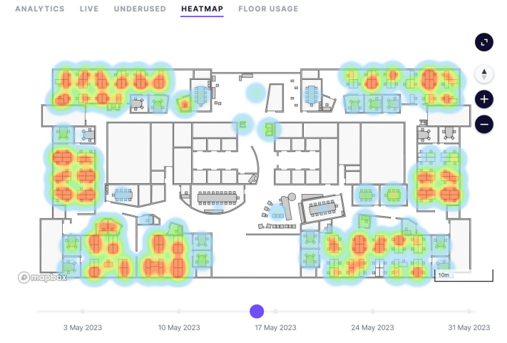 例如微软利用低分辨率摄像头(保护隐私)红外+运动传感器以检测区域使用和移动状态,实时显示占用状态。刷员工卡将使用人与办公桌关联分析数据,管理办公空间利用率。