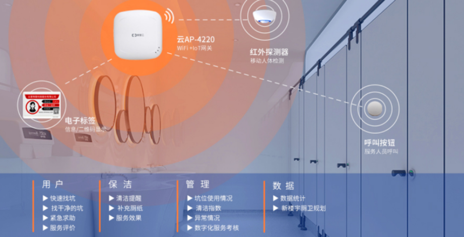 最典型是腾讯的“新一代智慧厕所”,不仅仅可通过坑位检测仪来监测厕卫的占用情况,超高分辨率的传感器实时监测空气的异味,烟雾探测器和声光报警器来监测厕卫异常情况,还联动了智能门锁、紧急求助、除菌净化机和空气净化设备,让厕卫管理更全面,让员工体验更加清洁方便。