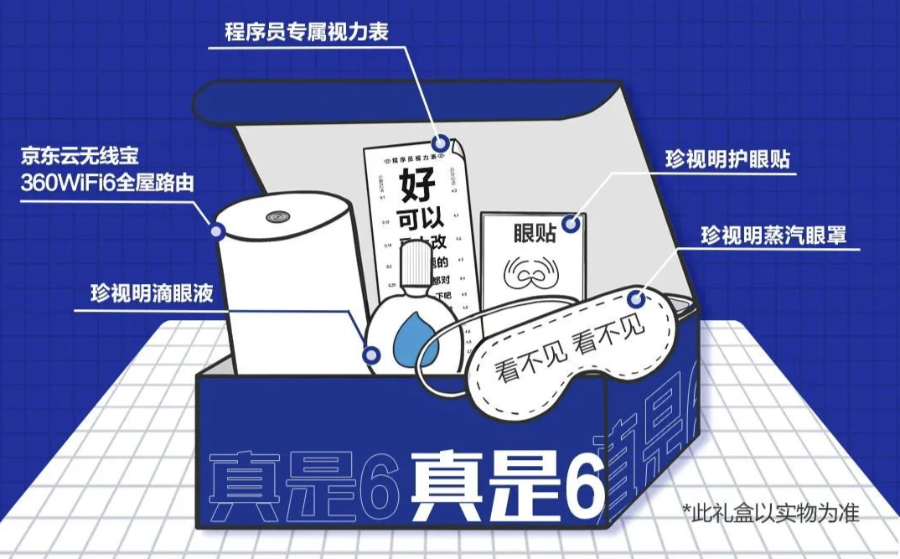 360联合360路由器、珍视明给员工们准备了一份超级大礼包!滴眼液、护眼贴、蒸汽眼罩保护视力;专属定制视力表上不是各种方向的“E”,而是能让程序员们会心一笑的“好”“可以”“马上改”等文字,有趣又有创意。