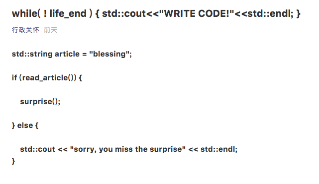 度厂用代码写下一行文字,表达对程序员们的感谢和祝福。
