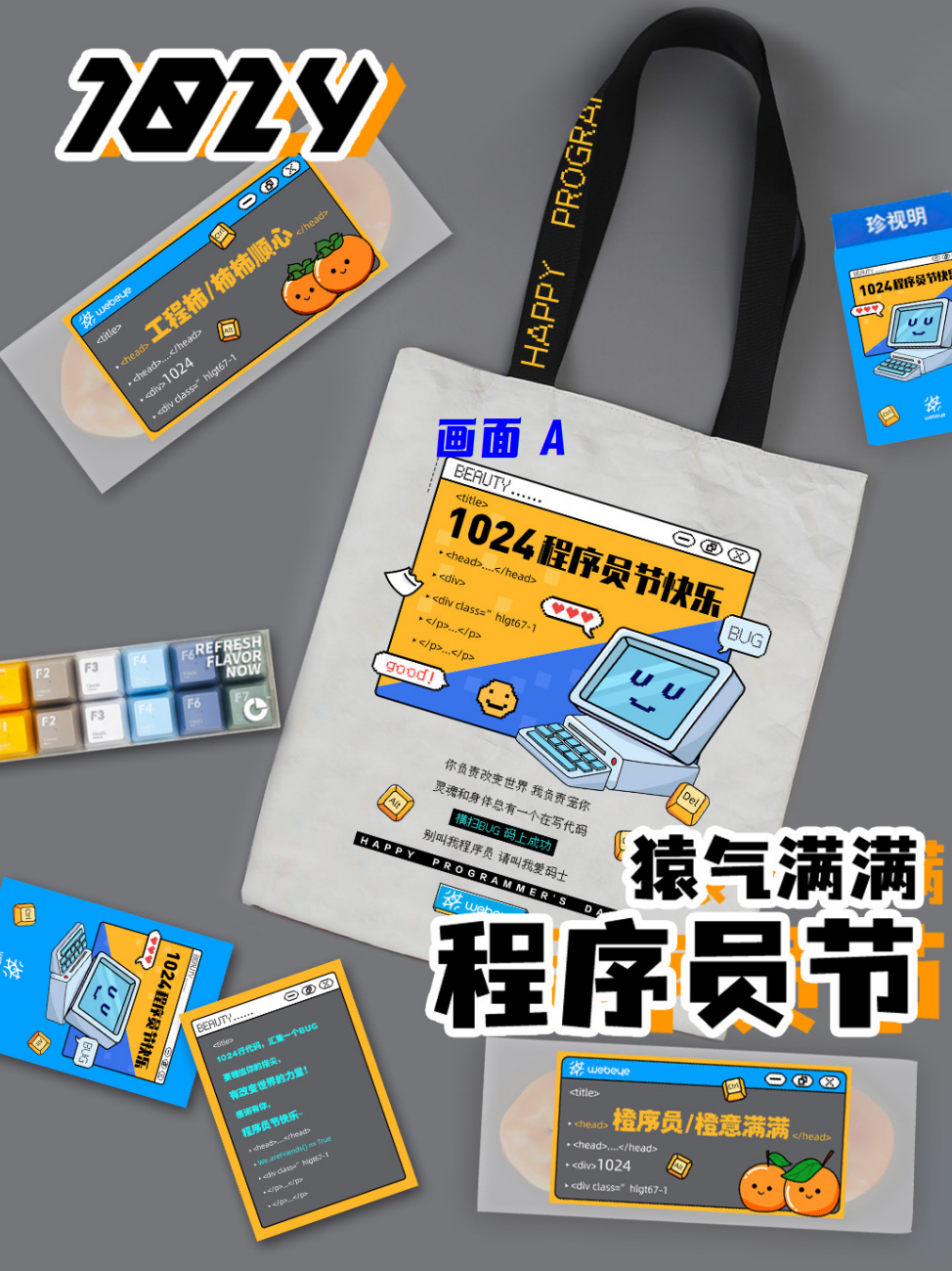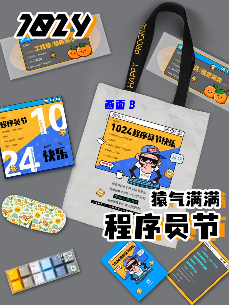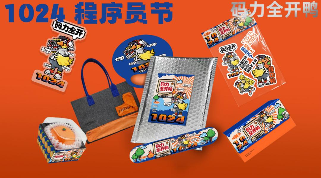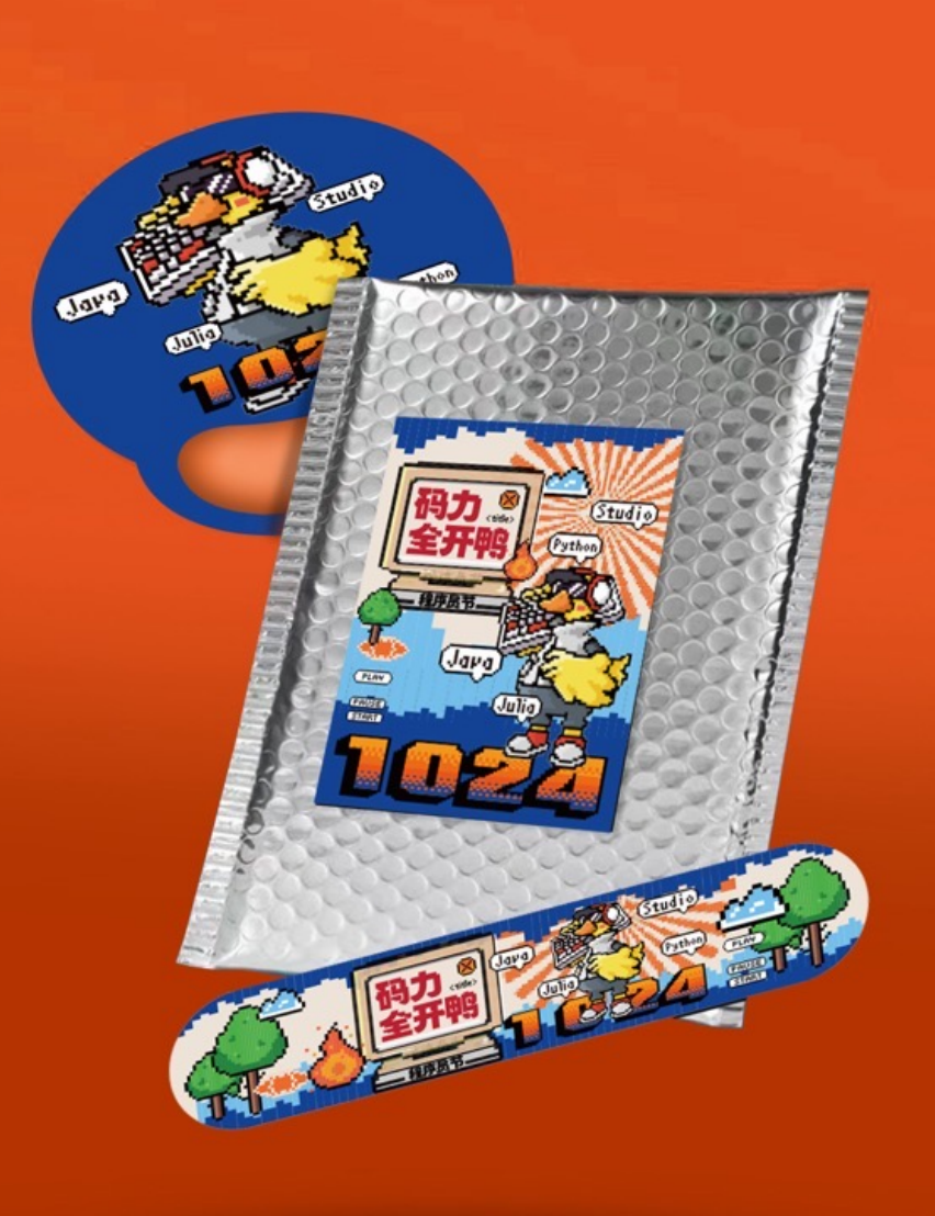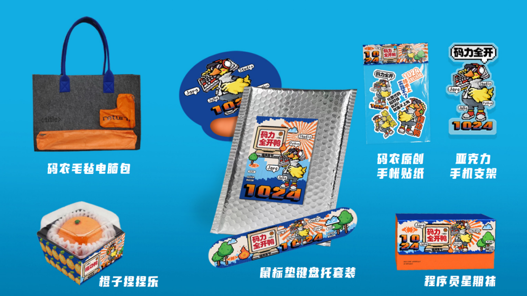 A版内容组成:神秘创意毛毡包、亚克力手机支架、橙功鸭解压捏捏乐、程序员手帐贴纸、程序员星期袜5双