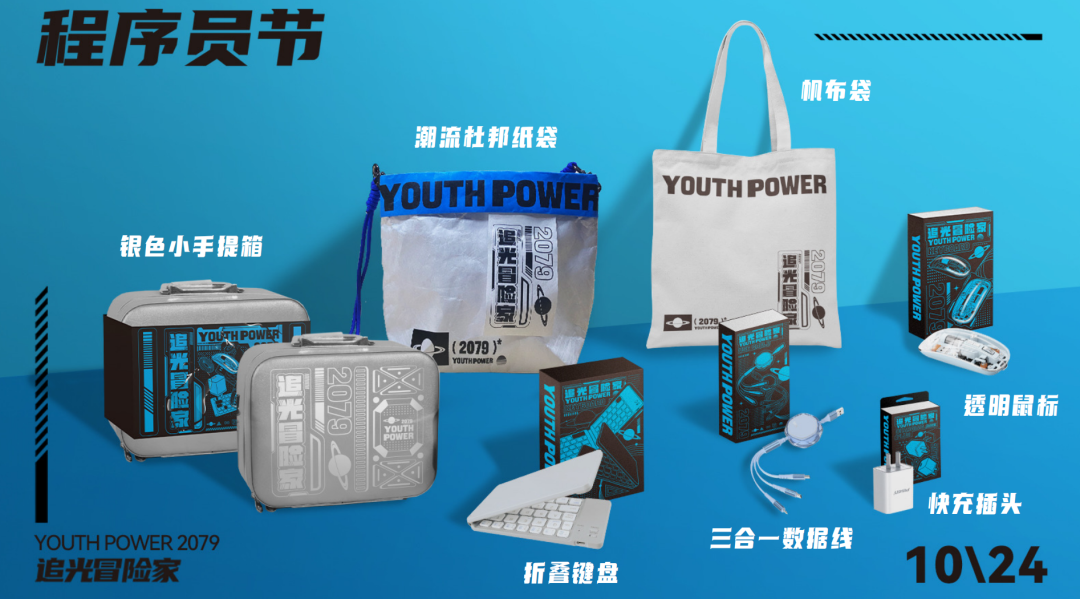 A版内容组成:银色潮流小手提箱、快充插头、科技感透明鼠标、折叠键盘、杜邦纸袋随身包(小号)