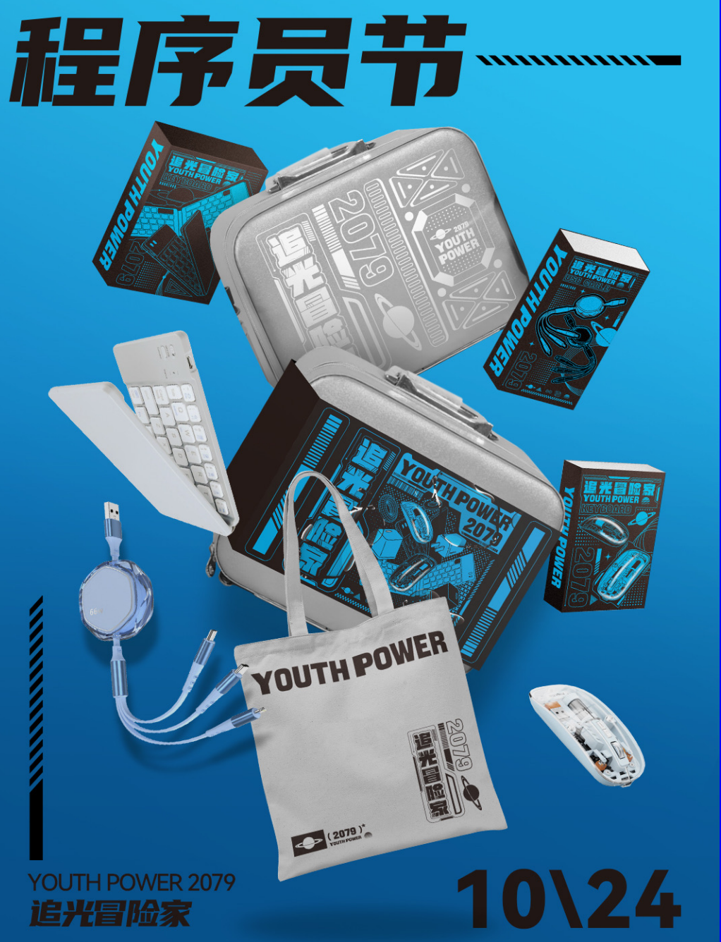 B版内容组成:银色潮流小手提箱、三合一数据线、科技感透明鼠标、折叠键盘、帆布袋