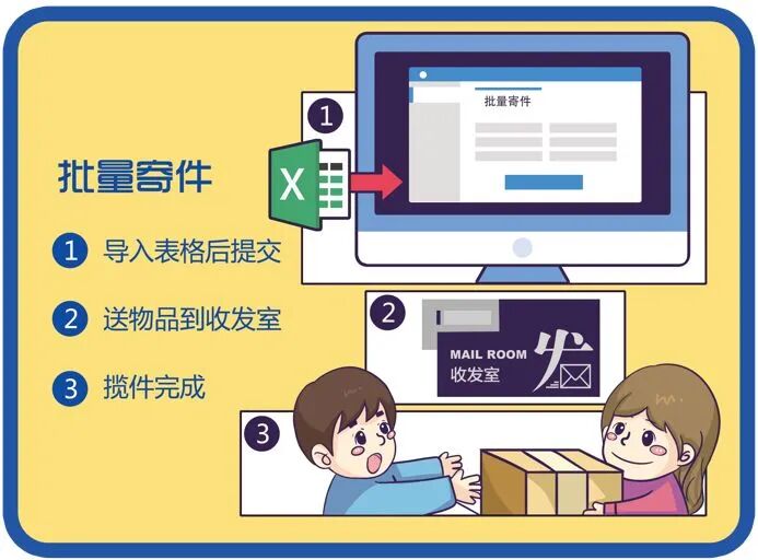 企业小邮局:企业内部为完成员工快件收发而搭建的集中服务场所,有的企业也称之为:“快递驿站”,“快递小屋”,“速递中心”等类似功能场所。