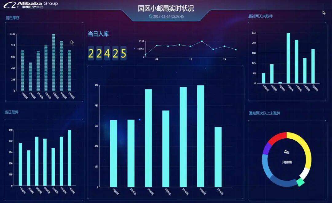 为了让员工更快收到包裹,阿里园区“小邮局”还运用了包裹热力图、智能机器人等技术,展开智慧“快递”配送。