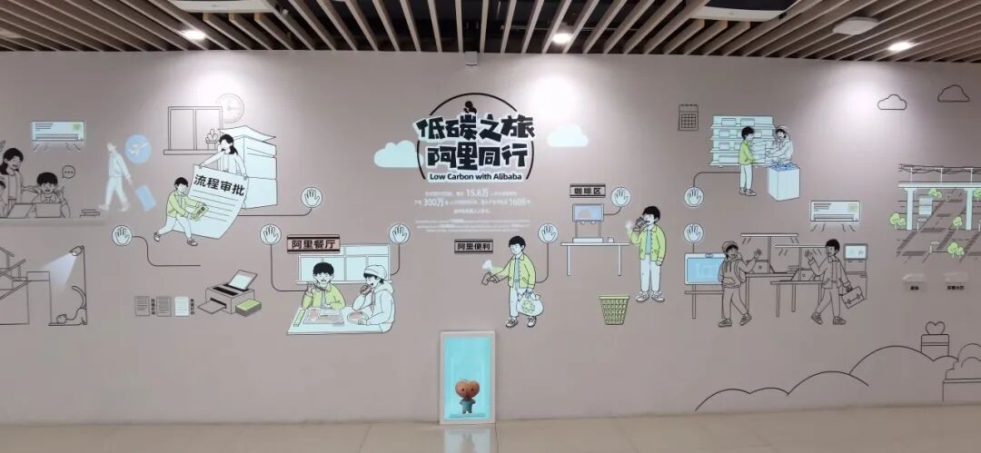 在西溪园区阿里还打造了一面“低碳之旅 阿里同行”触摸墙,提倡大家远程会议,将空调设置为最节能减碳的26度,办公过程中提倡双面打印,在阿里餐厅的光盘行动,小分菜系列,避免浪费……所有低碳绿色行为都会积攒能量,员工可以用能量兑换相应福利。