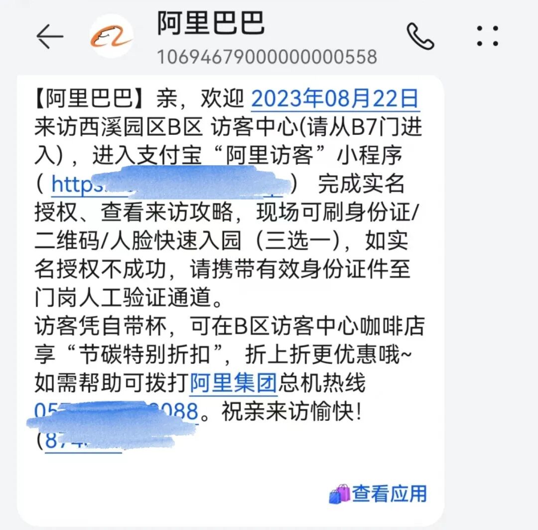 阿里专门为访客事务开发了“阿里访客”小程序,在支付宝中就可打开,来访者无需另行下载即可使用。完成实名授权、查看来访攻略,现场可刷身份证/二维码/人脸快速入园,如实名授权不成功,可携带有效身份证件至门岗人工验证通道。