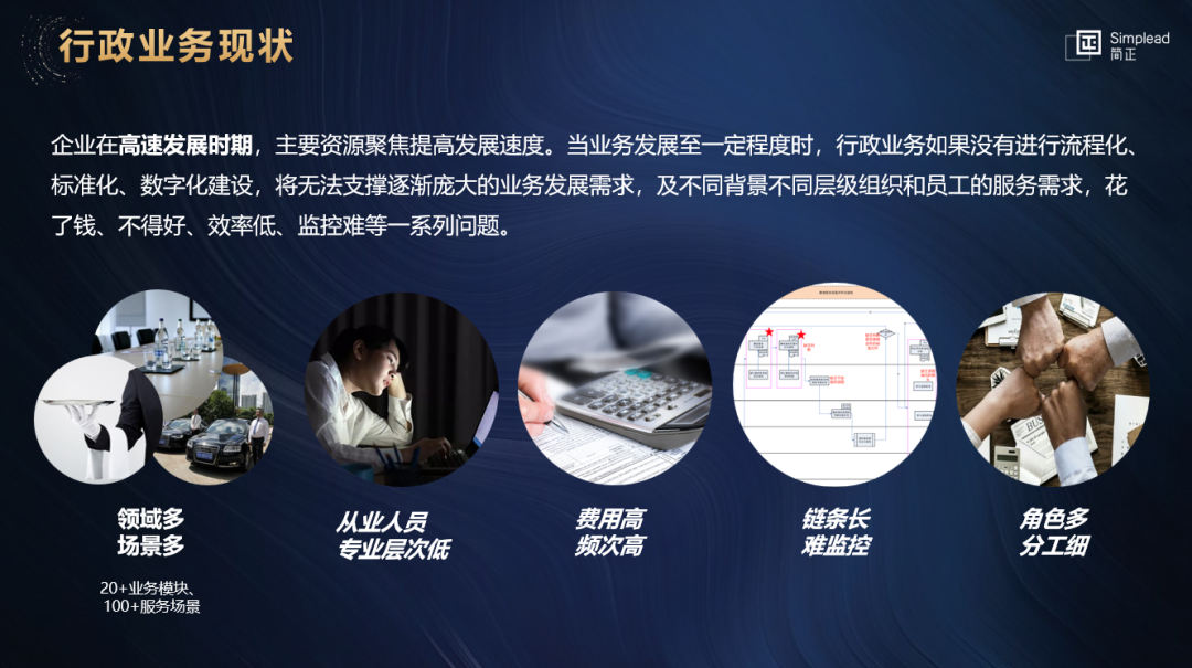 人们对企业行政工作的一般认识,往好里说是服务,往坏里说是打杂。因此姜晓梅女士在演讲一开始便直接指出了行政在公司的处境,为什么要做行政业务数字化,并谈到了行政业务数字化的现状和难点。
