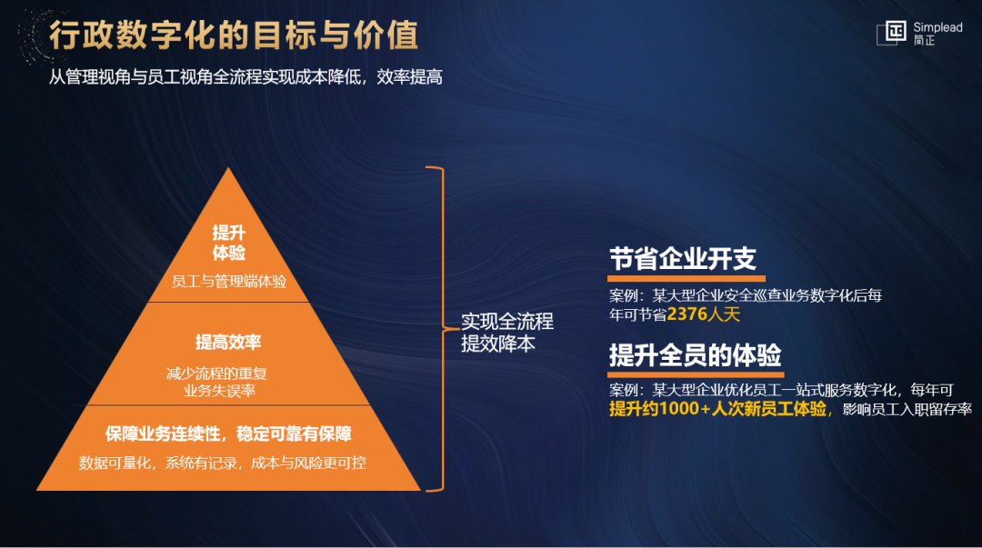 通过引入先进的数字化技术,企业可以对行政工作的各个环节进行全面优化和升级,从而实现全流程的降本提效,为企业创造更大的价值。
