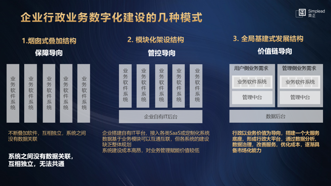 结合自己多年咨询和访谈企业的经验以及工作的经历,姜晓梅还将行政业务数字化建设分为了三种模式,供大家交流学习。