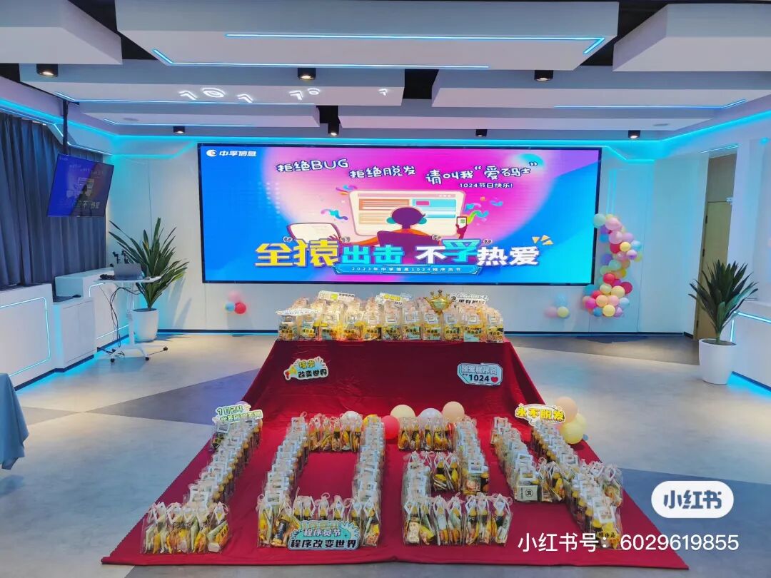 中孚信息在程序员节带来了“全猿出击,不孚热爱”主题活动,现场将送给程序员的礼包摆成了“1024”的形状,更是将节日氛围拉满。