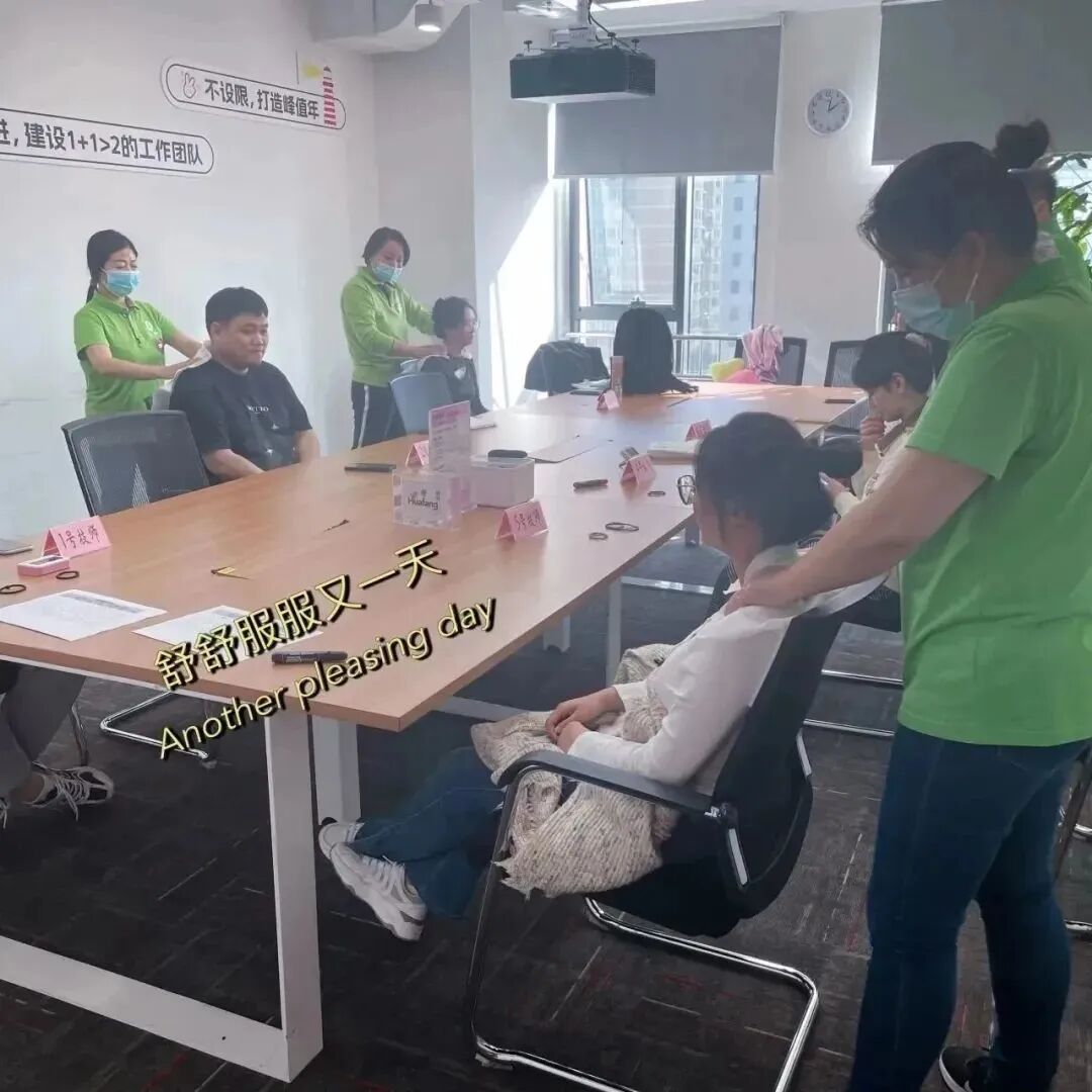 在这个特殊的日子里,小花还为大家提供肩颈按摩服务,让程序猿们的身心得到放松~