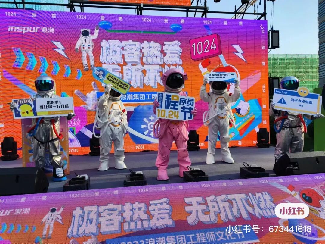 浪潮集团在1024这天来了一场极客嘉年华。不仅有科技感满满的太空人表演,还有保护形象、大锤出击等游戏。