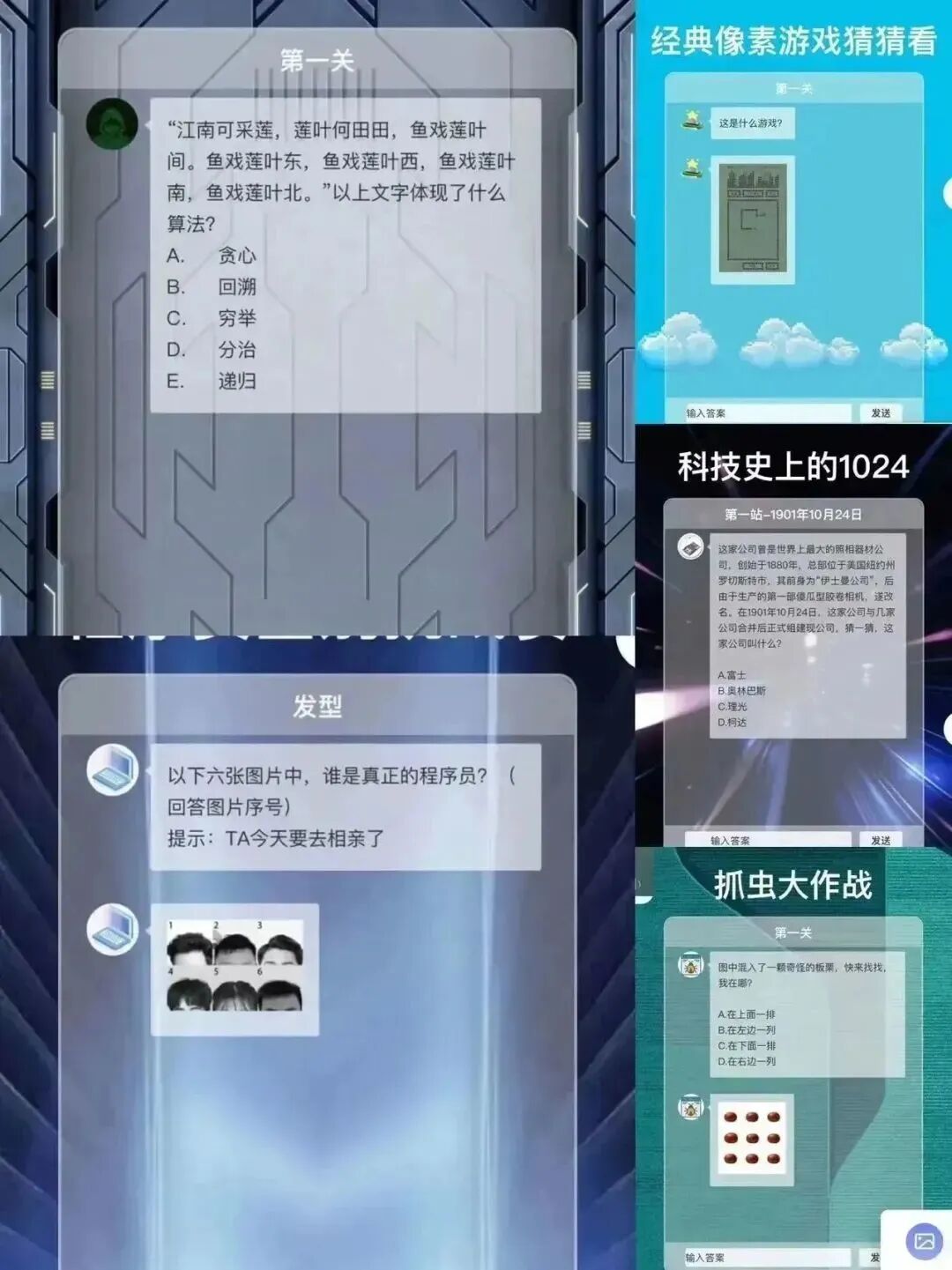 花房集团来了一场只有程序员同学才看得懂的算法编程趣味挑战,程序员鉴别大挑战、经典像素游戏猜猜看、科技史上的1024、抓虫大作战。