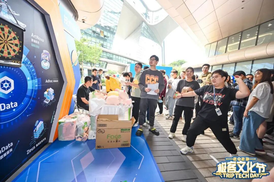 极客文化节人气最高的区域,是各种有趣有料的展位和游戏,考验着技术同学们的专注力、决断力、战斗力、意志力、想象力和凝聚力。