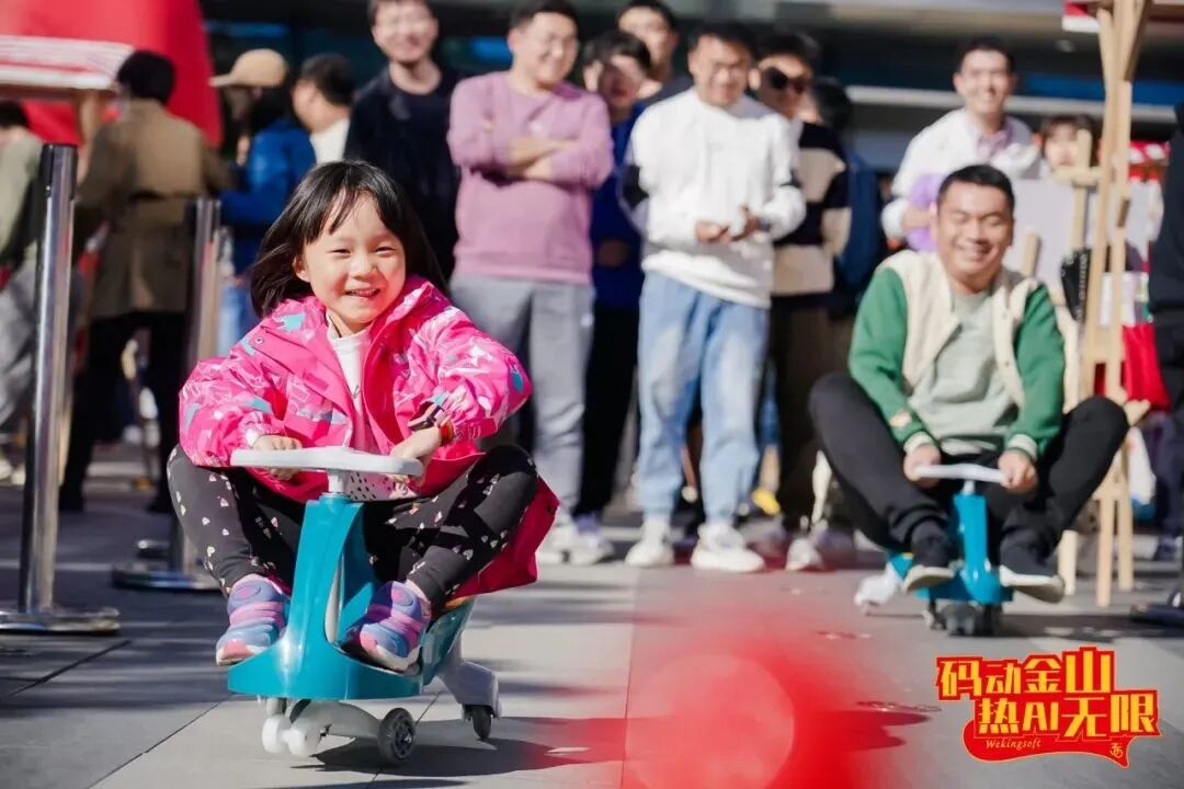 活动现场金山的大朋友、小朋友齐聚一堂,秋名山车神、全猿出击、放码过来等超多种有趣搞怪的游戏嗨翻全场。
