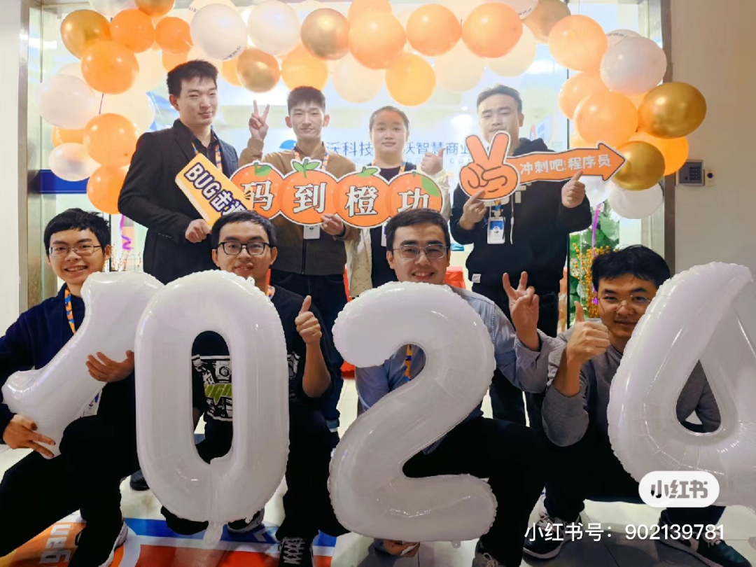 网沃科技的程序员们早上一进公司就收到了公司“橙”意满满的程序员专属早餐包。不仅如此,行政小姐姐们还在门口布置了气球和打卡牌,仪式感满满。