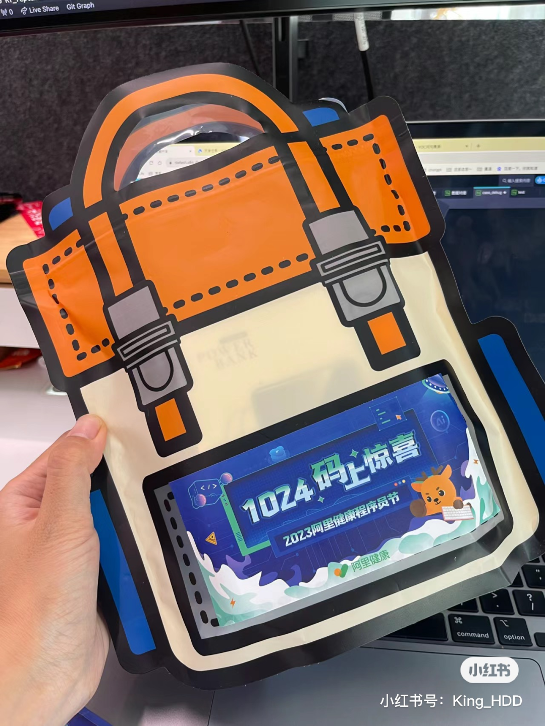 阿里健康为程序员们送上了“1024 码上惊喜”大礼包,无绳跳绳、眼罩颈枕,主打一个守护程序员的健康,还有一个实用的充电宝,外加阿里健康IP的可爱小贴纸,diy在充电宝上也不错哇。