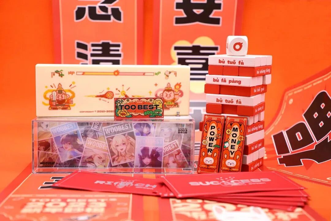 带有美好寓意的桌游也是好选项,比如厦门极致游戏去年的守岁互动叠叠乐,由不生气、不脱发、不加班...等反向祝福36颗积木组成。