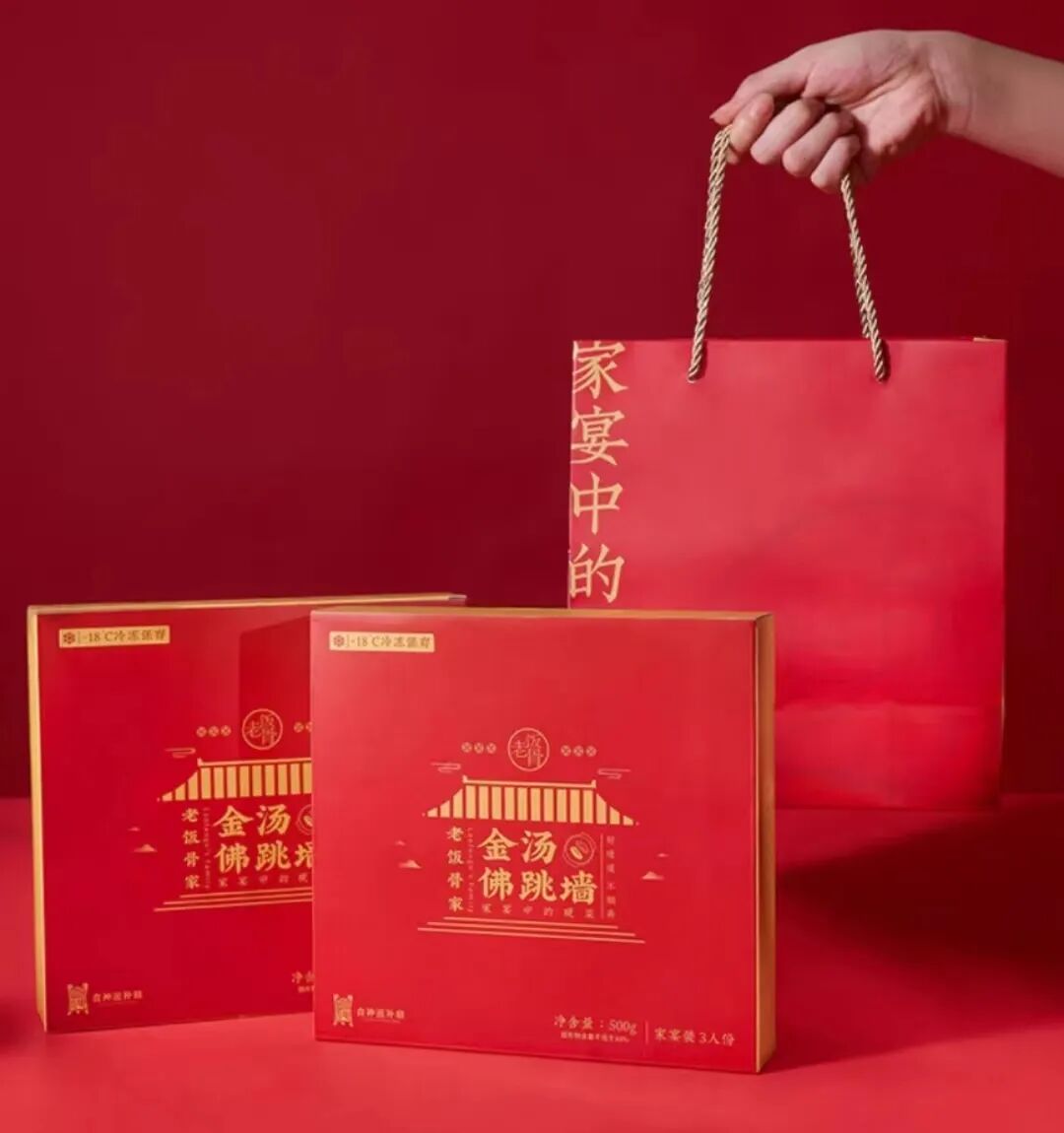 还有一个思路是:购买半成品食材给员工,为大家的年夜饭添菜,厨艺小白也能回家露一手,比如花胶鸡、椰子鸡火锅、佛跳墙等冷冻预制汤品。用这种方式一定要注意食品安全问题,尽量选择大品牌。