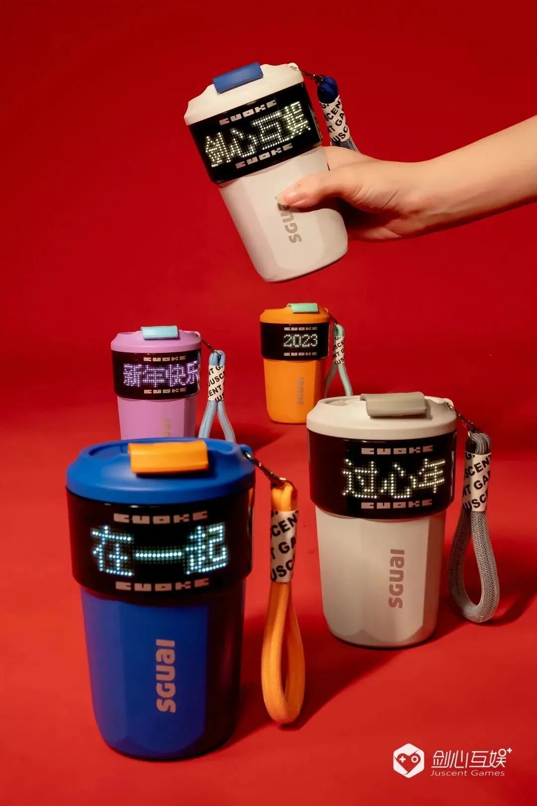 比如去年剑心互娱礼盒里的保温杯,带有自定义LED像素灯,瞬间就从众多平平无奇的杯子中脱颖而出,喝水也要做最亮的仔。