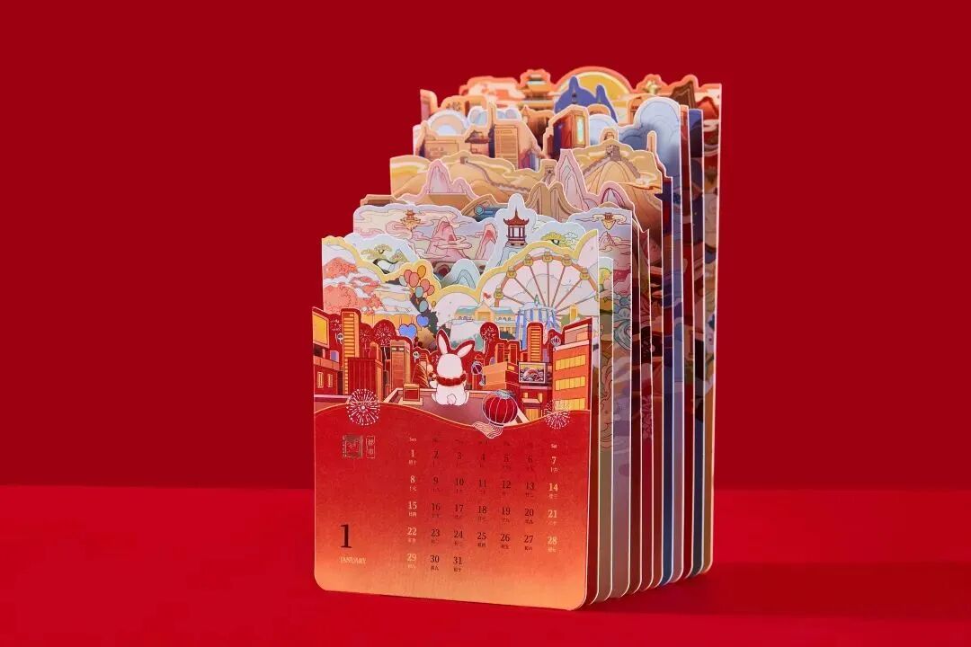 丰富精美的插画也是日历亮点。阅文集团去年的台历由12张原创手绘卡片异形切割组成,图片设计围绕网文12个经典品类展开,一画一景一世界。