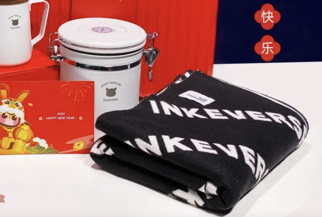 还可以是围巾、帽子、手套、毛毯等保暖物品。比如映宇宙集团去年的围巾;得物去年的设计款毛毯、帽子、围巾组合;粉笔去年的真丝眼罩;乐信的袜子等。