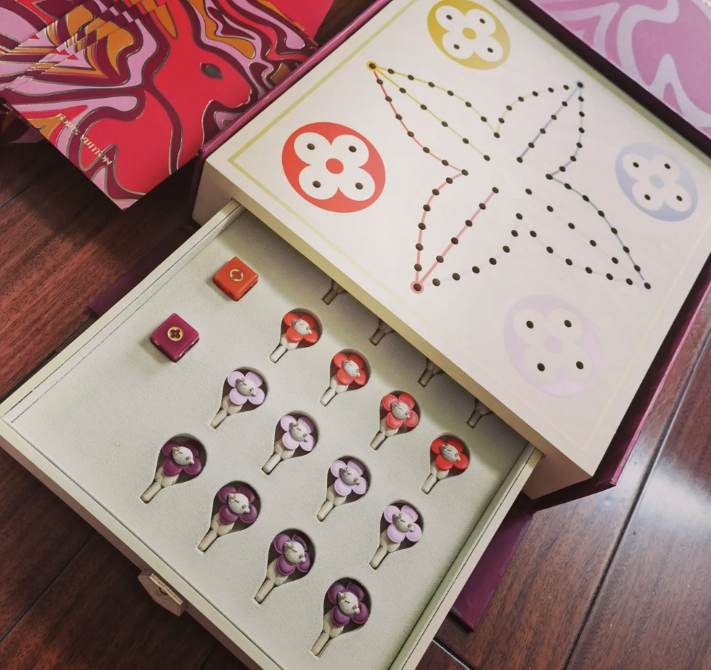 还可以把外包装设计成新春桌游载体,让它变身棋盘等。lv某年的新春礼盒制作了一套飞行棋,以盒子为棋盘,避免让包装盒变成环境负担。