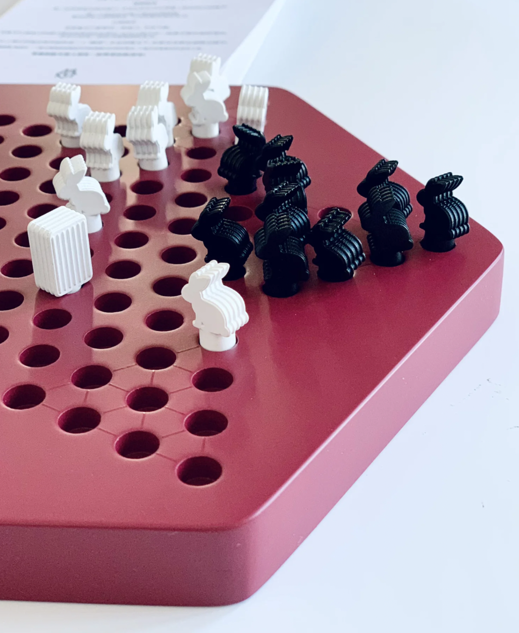 日默瓦某年的春节礼盒是中国跳棋,黑白绿三色棋子,一半是可爱的兔子外形,另一半是经典的Rimowa行李箱外形,精致好看。