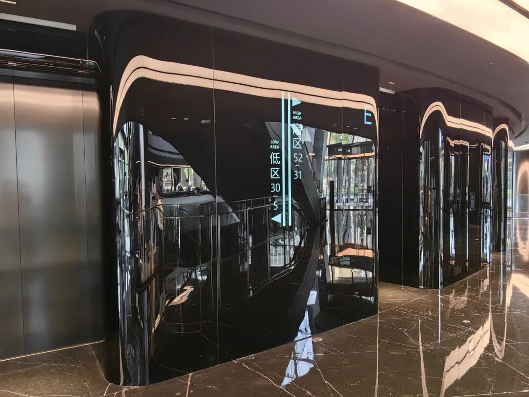 为了缓解上下班高峰的拥挤,不仅将电梯高低区和单双层分开设置,而且还内置了自动派梯系统,按下楼层后,即会自动匹配对应的电梯,实现智能分流。