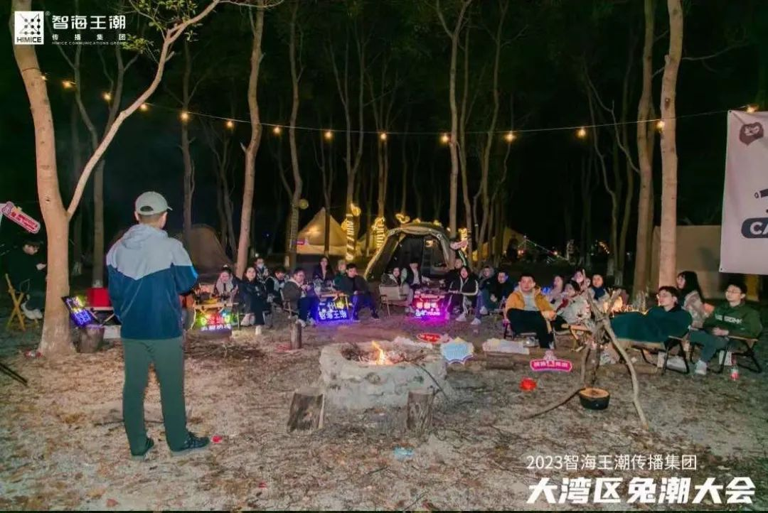 智海王潮传播集团2023年的年会选择了近两年大热的露营主题,在户外举办了一场“潮人露营音乐会”,其中的“潮人”就是智海王潮员工对外的自称。
