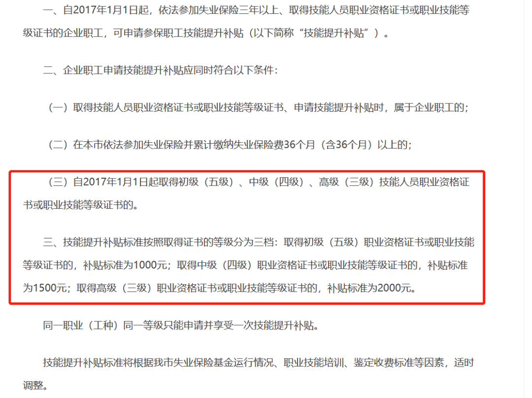 👉取得高级(三级)职业资格证书或职业技能等级证书的,补贴标准为2000元。