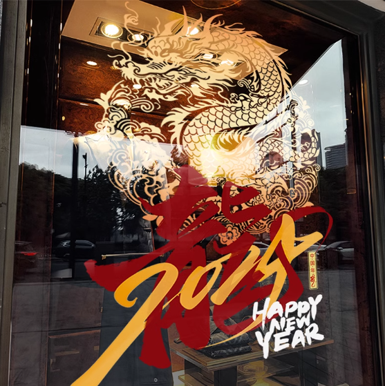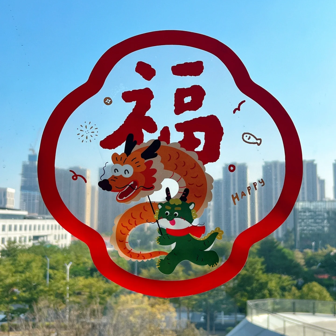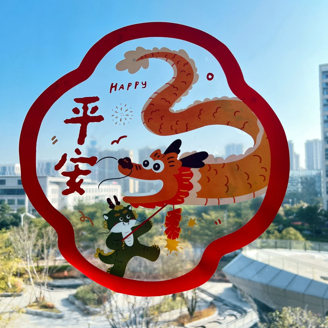 大厦的玻璃幕墙、窗户、会议室玻璃隔断,都可以贴一些静电窗花,便宜又好看。