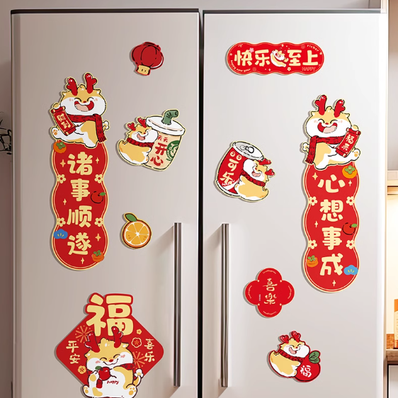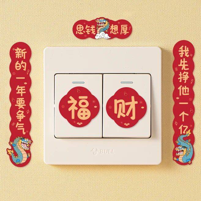 除了门上可以贴春联之外,还可以把可爱的迷你春联,贴在冰箱、微波炉、开关上,每个细节都不放过。