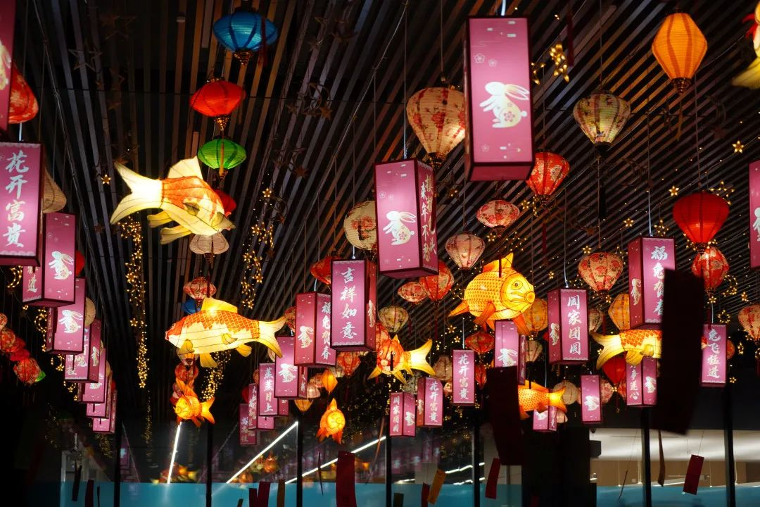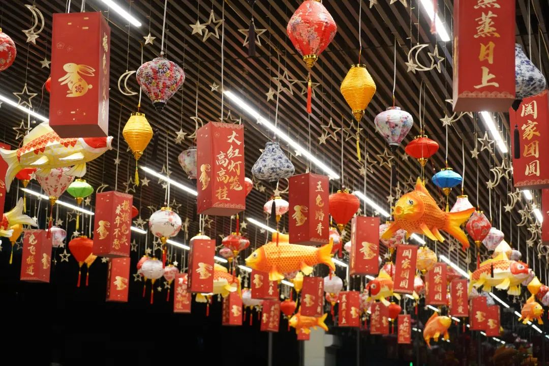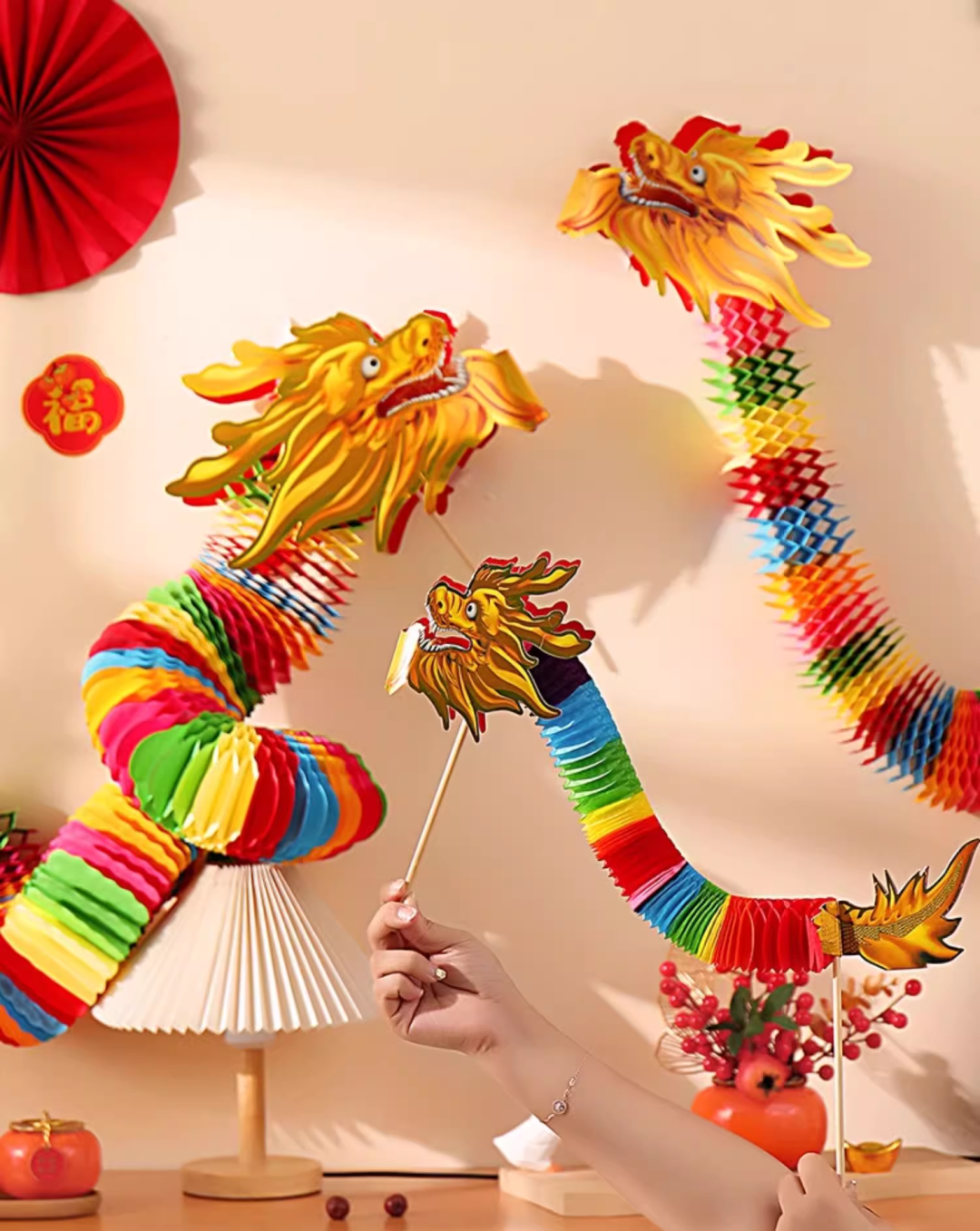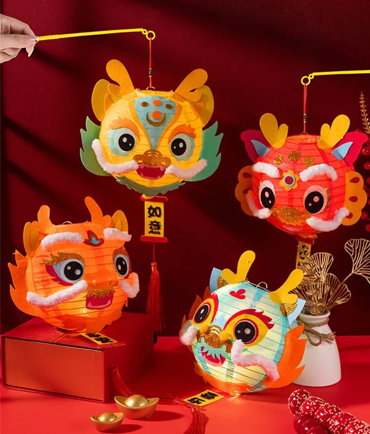 纸片装饰太单调的话,也可以选择龙元素的小灯笼,用灯光烘托氛围。