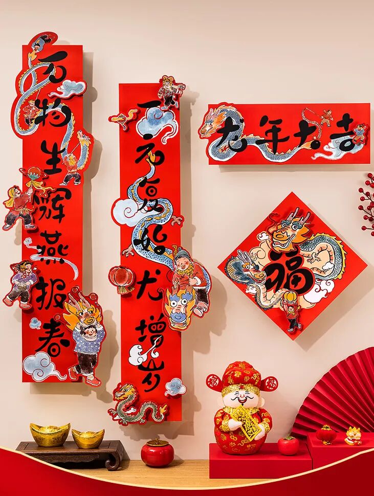 每年的生肖都是最重要的装饰元素,明年就是龙年了,跟“龙”有关的装饰都可以安排上了。