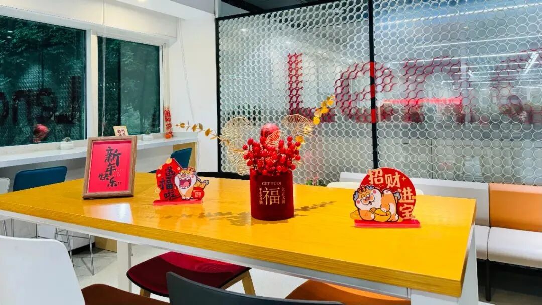 联想的新年装饰也是遍布公司各地,让办公室充满热闹的新春氛围。