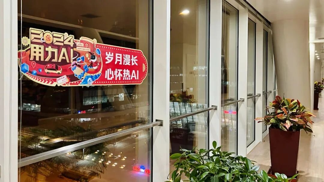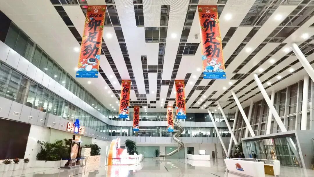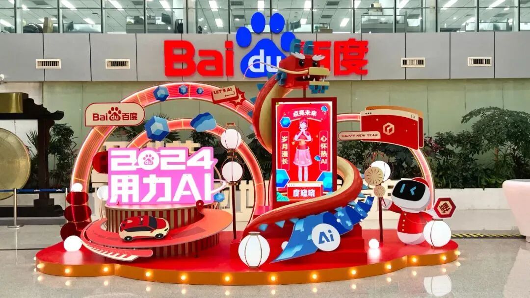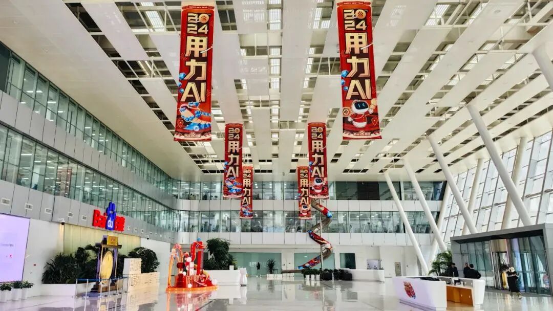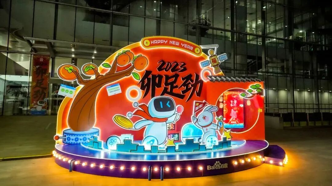 百度每年的新年装饰都会契合当年的公司发展主题,例如2023年的主题是“卯足劲”,2024年主题是“用力AI”。