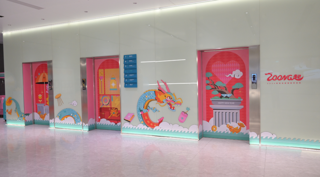公司大门和电梯也不要放过,只需一张地垫,立马就有过年的感觉了。